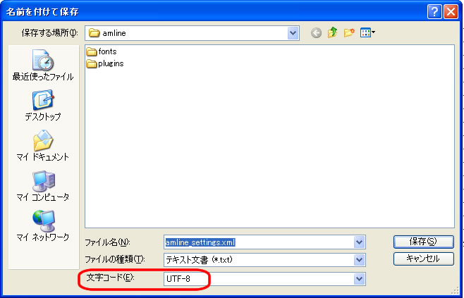 Windowsの方はメモ帳で変更するとOKだと思います。新規保存するときは下記の部分に注意してください。