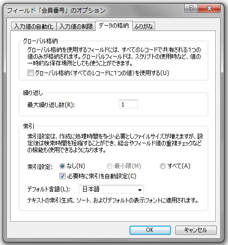 フィールドのオプション2